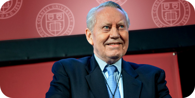 The American philanthropist who was called the ultimate example of Giving While Living, Charles ‘Chuck’ Feeney, died this week aged 92. He dedicated his fortune, made from duty free shops, to universities and good causes, giving away US$8 billion across five continents, mostly anonymously. Image credit: Cornell University |