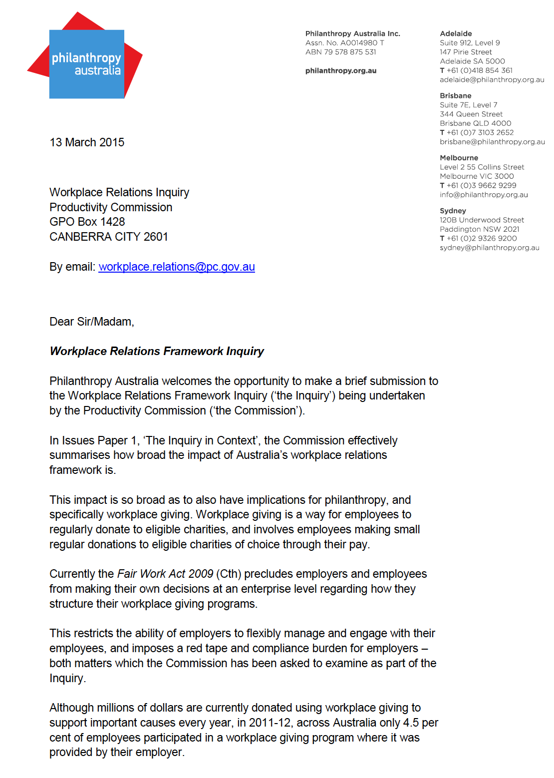 Our submission to the Productivity Commission Workplace Relations Framework Inquiry.
