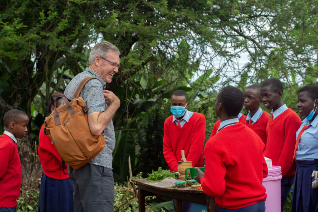Darrell Wade with students from Orkeeswa, in northern Tanzania. Photo by Kate Holland, provided by AIDN.