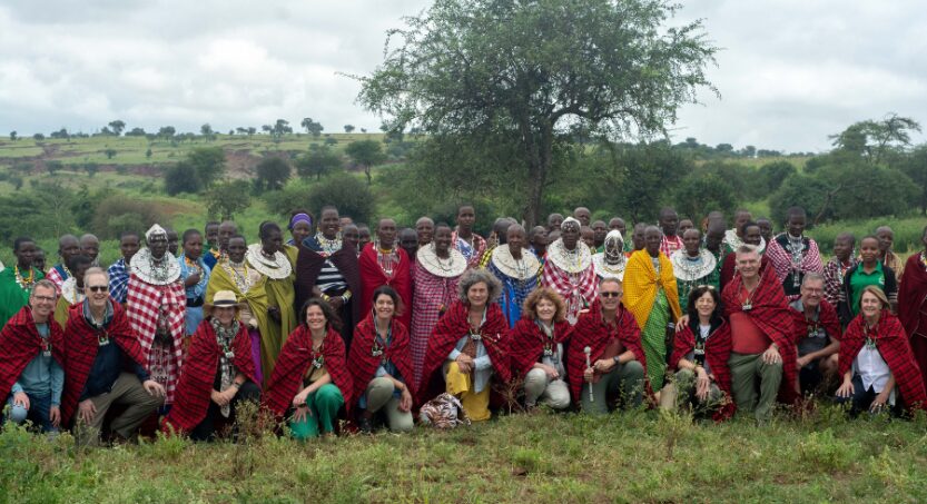 Top photo caption: Darrell and Anna Wade with the AIDN insight tour guests and staff and beneficiaries of an organisation called WAEV in northern Tanzania. Photo by Kate Holland, provided by AIDN.