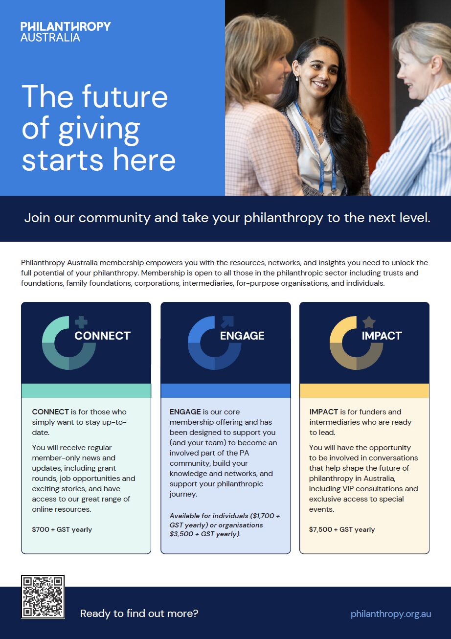 This downloadable flyer outlines the benefits of Philanthropy Australia membership, by tier.