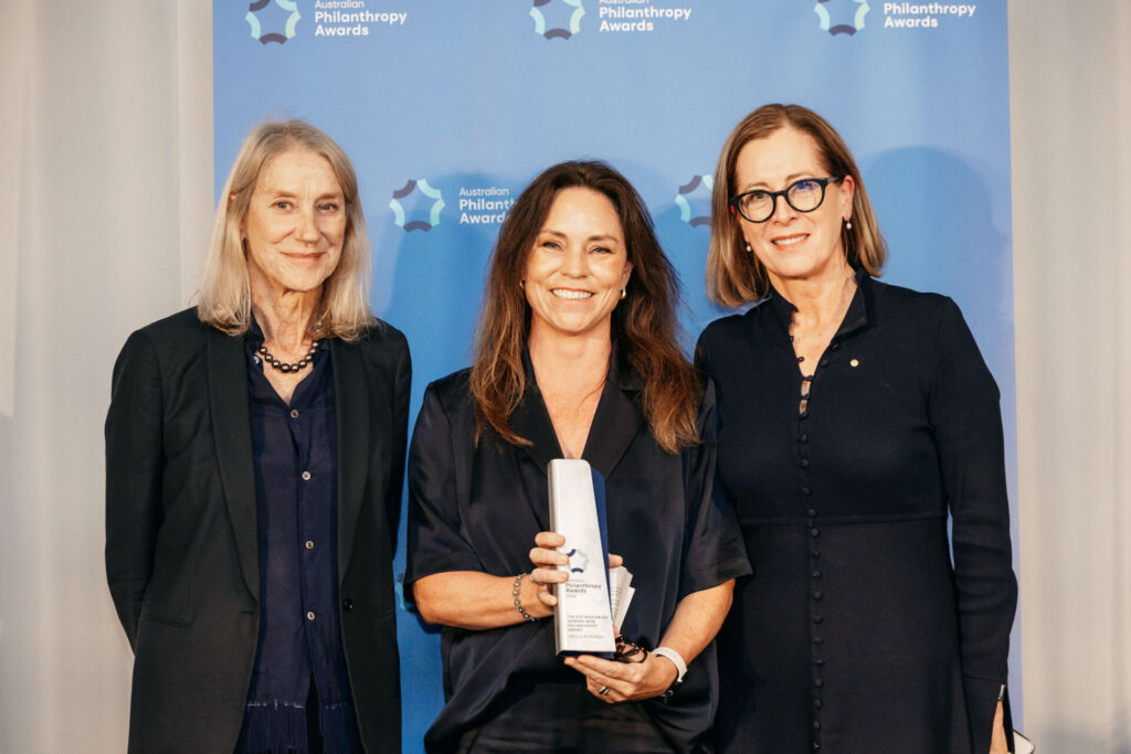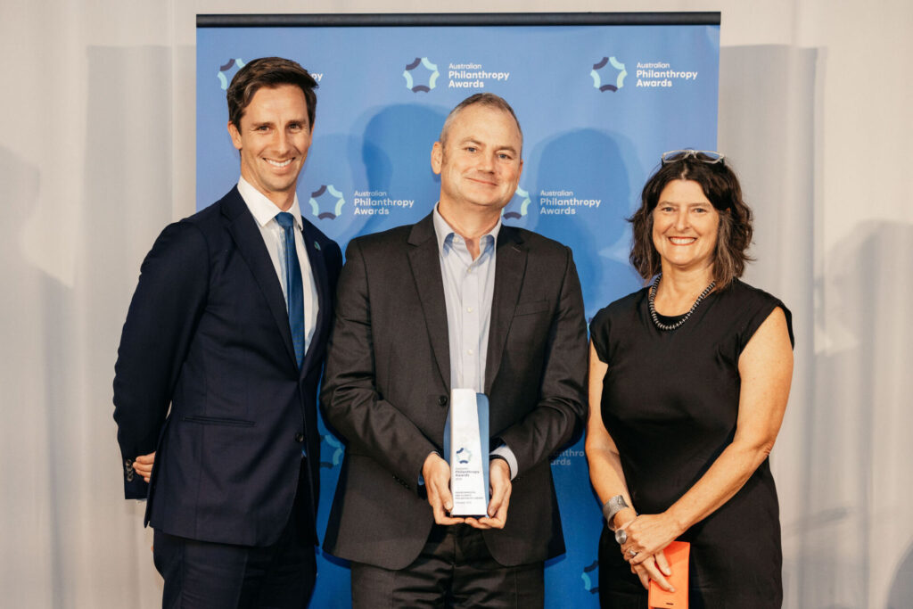 Left to right: Jones Jones from The Aurora Group – A Ruby Foundation Ltd, Em Scott from GiveOUT and Ben Rodgers from the Inner North Community Foundation (and Chair of Community Foundations Australia). Em and Jones accepted the 2024 Community Philanthropy Award on behalf of the Amplify Pride Fund.Centre: Steffi Chang from Plan International Australia, who, with partners in the Gender Compass initiative, were a finalist in the Collaboration Award category. Left to right: Michael Drapac and Professor Gary Rogers, Dean of the Deakin University School of Medicine. Michael was the recipient of the Inclusion Award 2024 for his philanthropy that created the Damion Drapac Centre at Deakin University. MC of the evening was ABC disability affairs reporter Nas CampanellaLeft to right: Michael West who delivered the Welcome to Country and co-presented the First Nations Award, Adam Ognall from Philanthropy Australia and Kim Collard the Chair of the Bibbulmun Fund, recipient of the First Nations Philanthropy Award 2024. Left to right: Climate 200 Executive Director Byron Fay, Climate 200 donor Robert Keldoulis and Antonia Ruffell, who presented the Innovation Award 2024 to Climate 200.Left to right: Laura McMillan from the Macquarie Group Foundation (who presented the Leadership Award 2024) and Ginette Snow (recipient of the Leadership Award with her husband Terry Snow AM). Left to right: Climate 200 Executive Director Byron Fay, Simon Holmes à Court (Climate 200 convenor) and Amanda Martin OAM from the Australian Environmental Grankmakers Network (AEGN) who presented the Environmental and Climate Award 2024 to Climate 200. Left to right: Jill Reichstein OAM, Sarah Bailey from MECCA M-POWER and Julie Reilly OAM (CEO of Australian Investing in Women). Jill and Julie presented the 2024 Eve Mahlab AO Gender-wise Philanthropy Award to MECCA M-POWER. Collaboration Award recipients left to right: Kristi Mansfield, CEO and Co-Founder of Seer Data & Analytics, Andrea Burazor, Project Manager at Seer Data & Analytics, Sandy Blackburn, Founder and Managing Director of Social Outcomes, Caroline Gurney, CEO of Future Generation.Cambodia Children’s Fund received the International Philanthropy Award 2024 for the Neeson Cripps Academy. Pictured left to right are: Olivia Pigeot and Isabella Neal-Shaw from CCF.Kim Collard from Bibbulmun Fund (left) with Stu MacLeod from the Fremantle Foundation accepted the First Nations Philanthropy Award 2024.Left to right: Ginette Snow and Georgina Byron AM (CEO of The Snow Foundation)Jenny Stephens (left) and Jon Cheung (far right) presented the Inclusion Award 2024 to Michael Drapac (centre). Second from left is Professor Gary Rogers, Dean of the Deakin University School of Medicine. Second from right is Jimmy Buck, Chief Advancement Officer at Deakin University. Michael was the recipient of the Inclusion Award 2024 for his philanthropy that created the Damion Drapac Centre at Deakin University.Left to right: CEO of Australia Communities Foundation, Maree Sidey with Larissa Baldwin-Roberts from GetUp! Maree and Larissa accepted the Collaboration Award 2024 on behalf of the Voices for Impact initiative.Michael Curran from NV Access, which was a finalist in the Inclusion Award category.