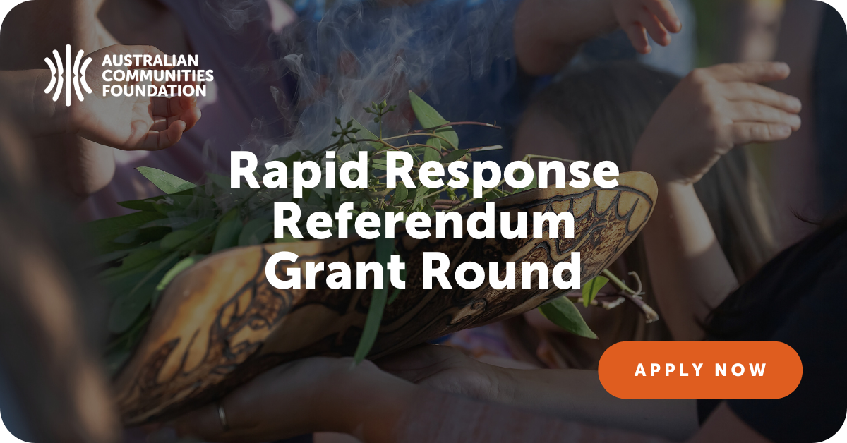 Australian Communities Foundation is calling for applications from organisations and community groups amplifying First Nations voices for a resounding YES in the upcoming Referendum. One-off grants of between $2,500 and $15,000 are available for initiatives that elevate First Nations voices and leadership within the Yes campaign, and enable accessibility of information about Voice, Treaty, Truth. The Foundation will be quickly distributing all available funds. Eligible organisations are encouraged to apply as soon as possible.