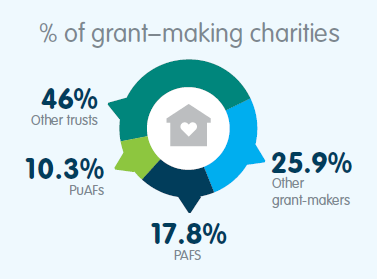 As at 8 February 2023, 19% of the 59, 967 registered charities were grantmakers. Grantmakers comprise of three broad types of structured philanthropy and one category of ‘other grantmakers’: