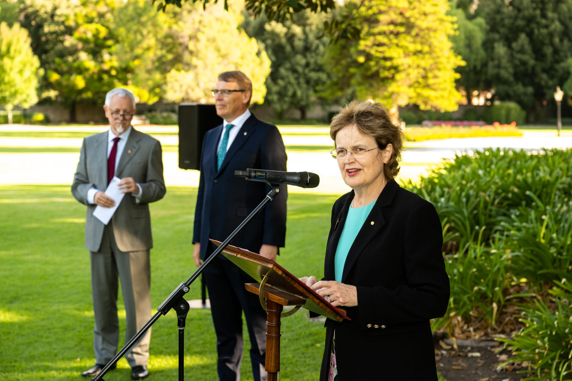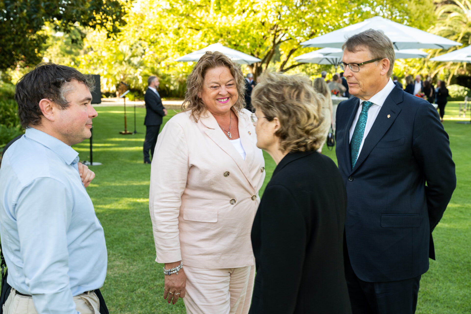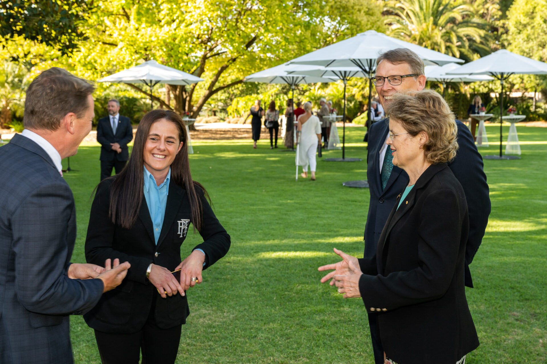 It was a clear afternoon and Her Excellency greeted all guests individually on the North Terrace lawns. In her speech she commented that the introduction line moved so slowly because everyone wanted to thank her and Mr Bunten and she wanted to thank all the guests for their contributions.
