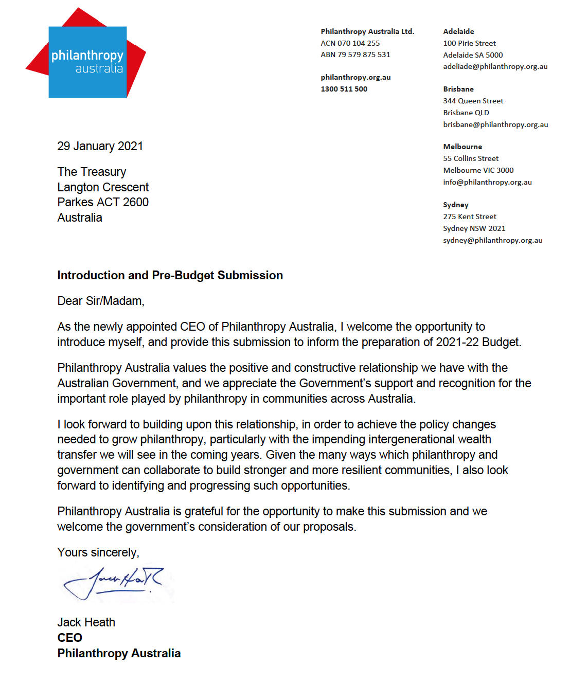 Philanthropy Australia’s submission to the Australian Government ahead of the 2021–22 Budget. The submission reiterates our Policy Priorities for a Post-COVID-19 Australia, framed within the context of 2021 and the path to economic recovery.