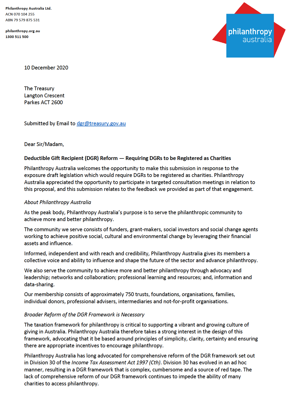 Our submission to the Australian Government recommended that certain additional types of DGRs be included within the scope of the legislation.