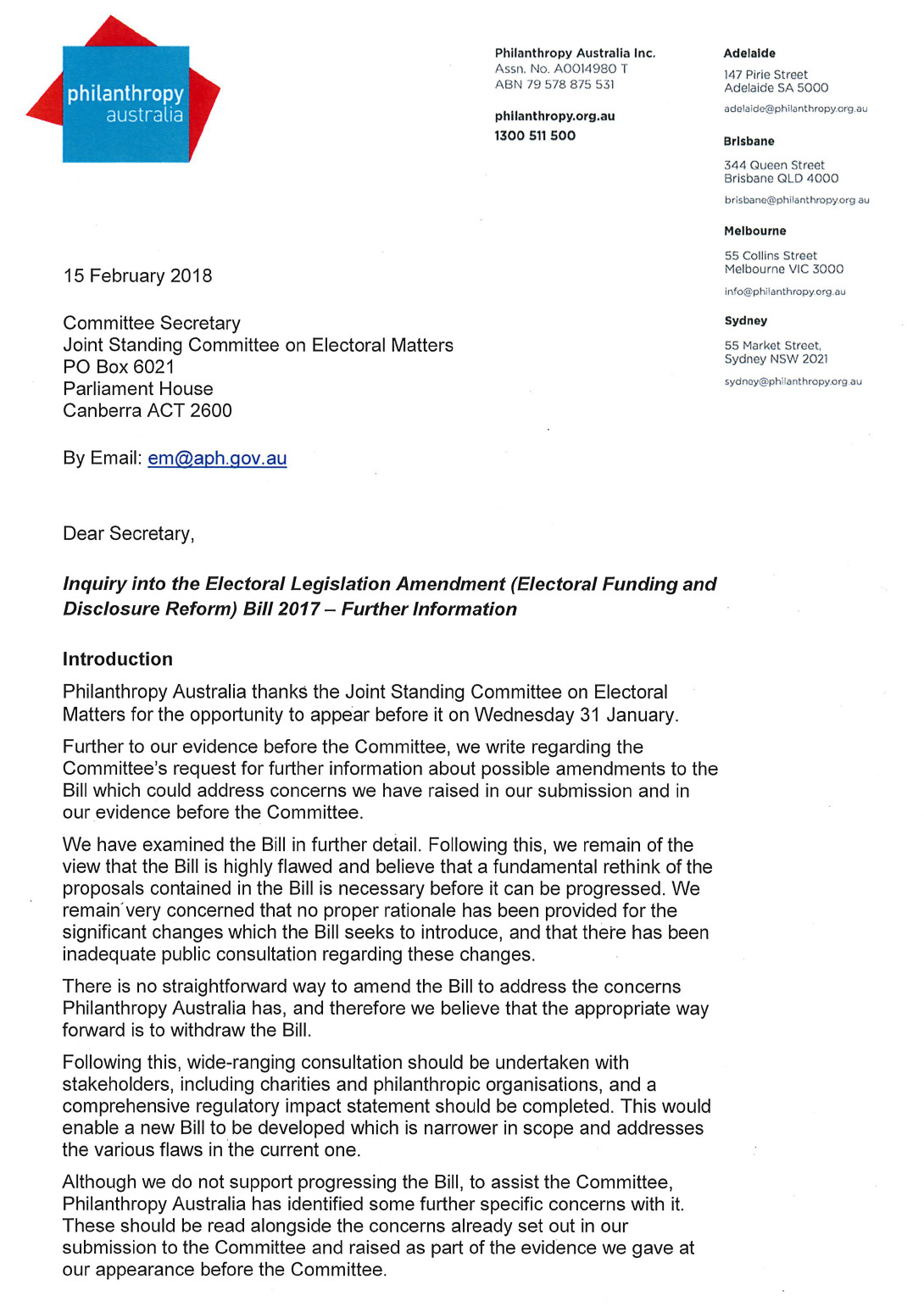 For more information, see Inquiry into the Electoral Legislation Amendment (Electoral Funding and Disclosure Reform) Bill 2017) on the Parliament of Australia website.