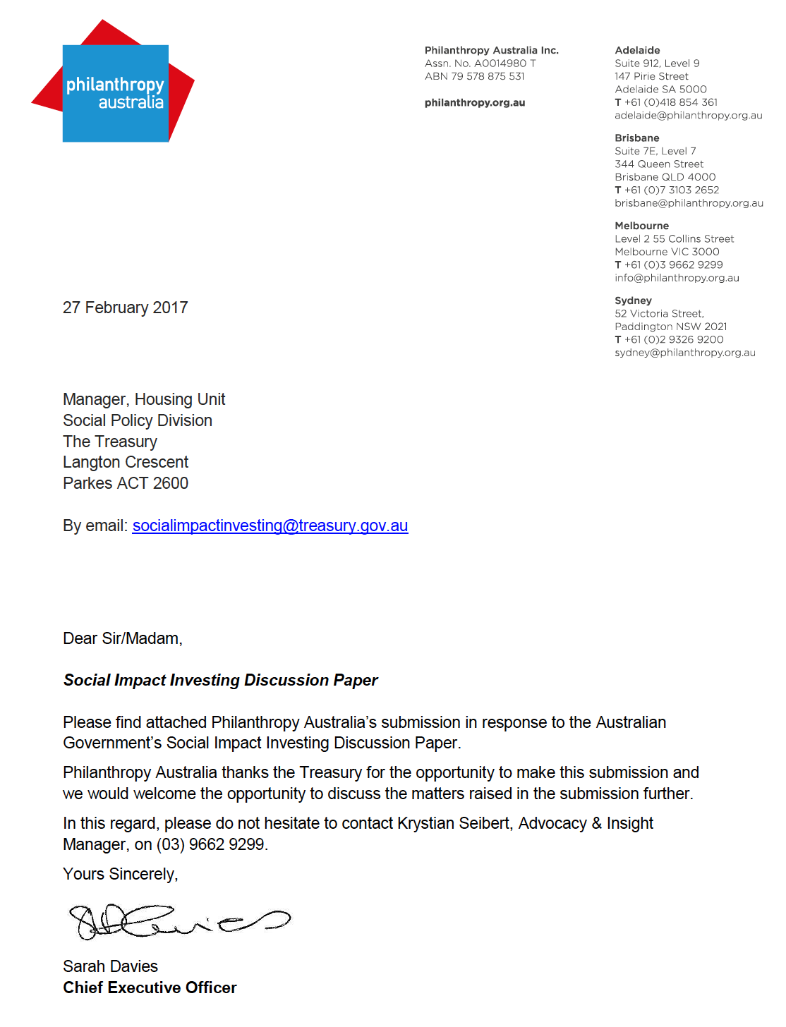 Our submission in response to the Australian Government's Social Impact Investing Discussion Paper.