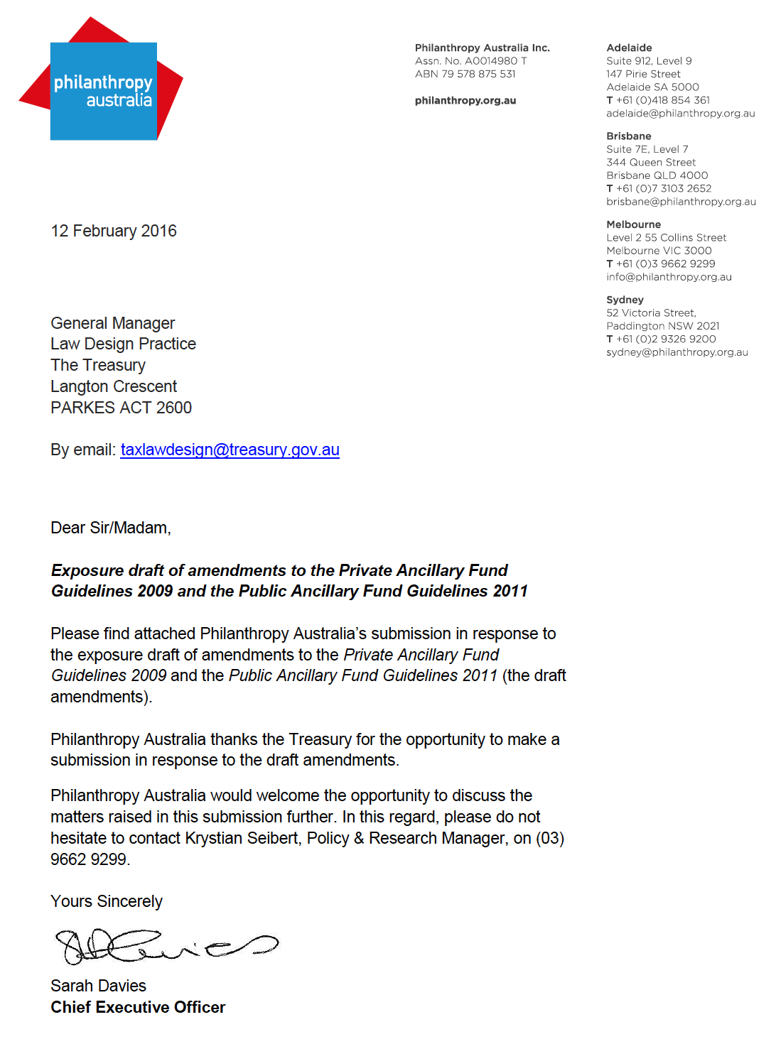 Amendments to the private and public ancillary fund guidelines submission 2016