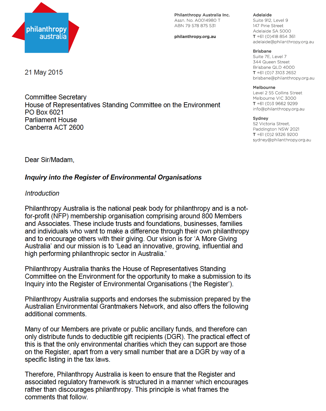 Our submission to the House of Representatives Standing Committee on the Environment's Inquiry into the Register of Environmental Organisations.