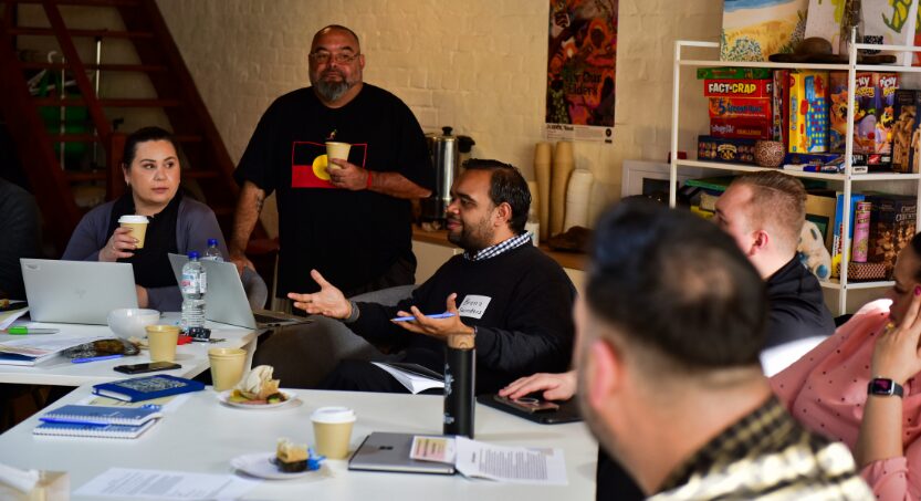 For Spinifex’s CEO Warren Miller (main image, standing), the impetus was to create pathways for First Nations people to access resources outside current structures and “shape how and in what ways we interact with philanthropy and evolve and influence sustainable change while preserving our cultural identity”.