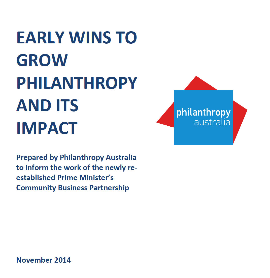 Philanthropy Australia's submission to the Prime Minister's Community Business Partnership, 'Early wins to grow philanthropy and its impact'.