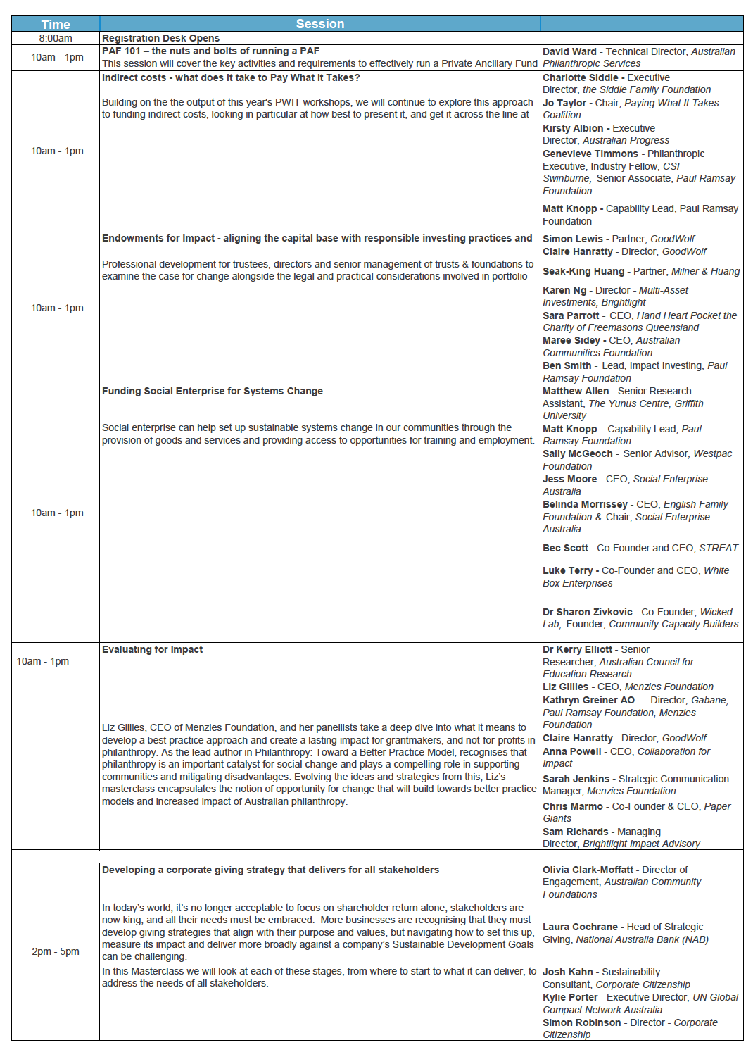The program for the pre-conference masterclasses at our Philanthropy Australia National Conference 2022 on 6 September 2022.