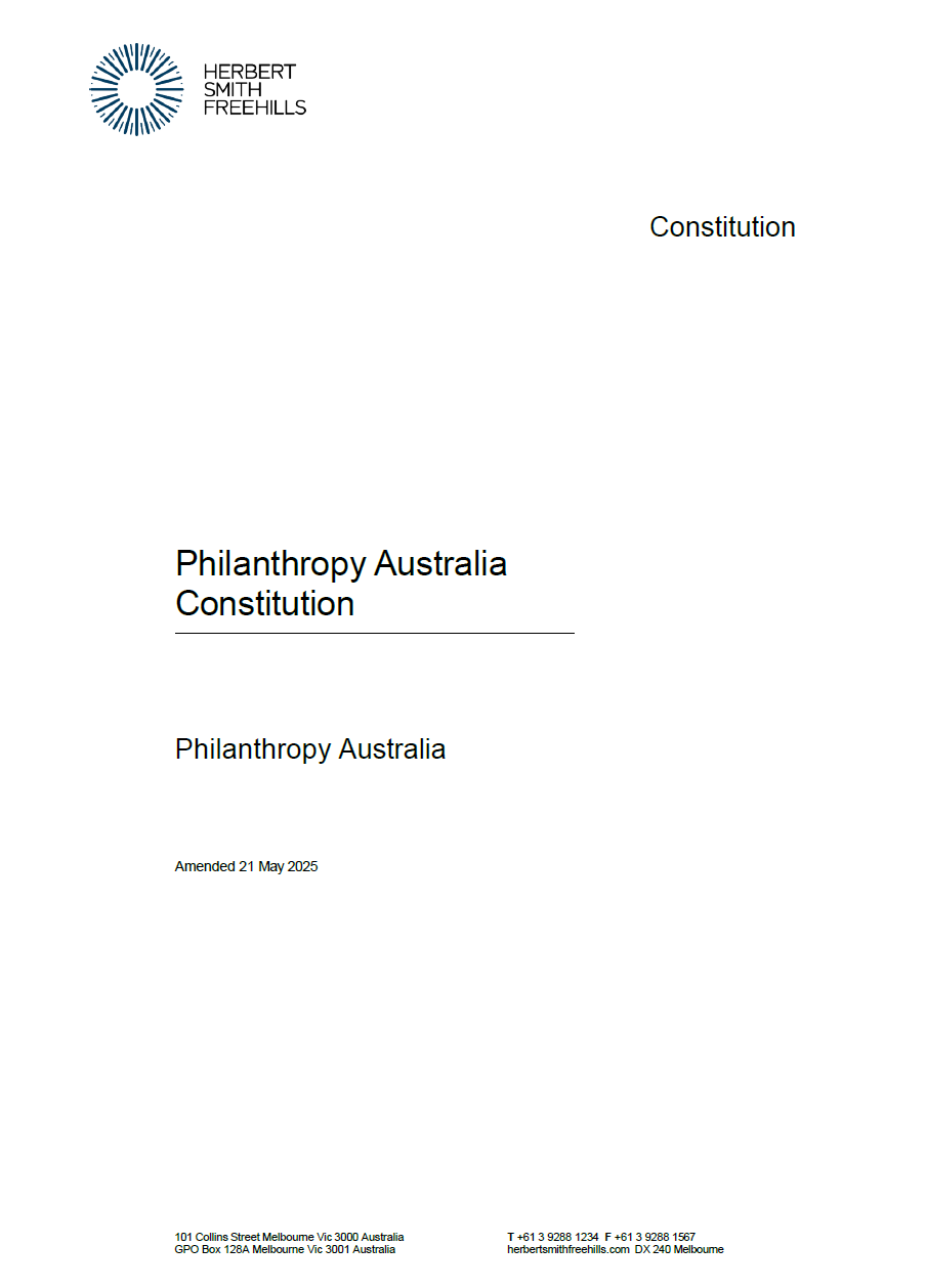 Philanthropy Australia Inc was incorporated as an incorporated association in Victoria in November 1987 as a peak body for philanthropists. In 2018, the members resolved to convert from an incorporated association to this company limited by guarantee to reflect its national reach and representation. The company is a continuation of the legal entity by operation of the Associations Incorporation Reform Act 2012 (Vic) and the Corporations Act 2001 (Cth).
