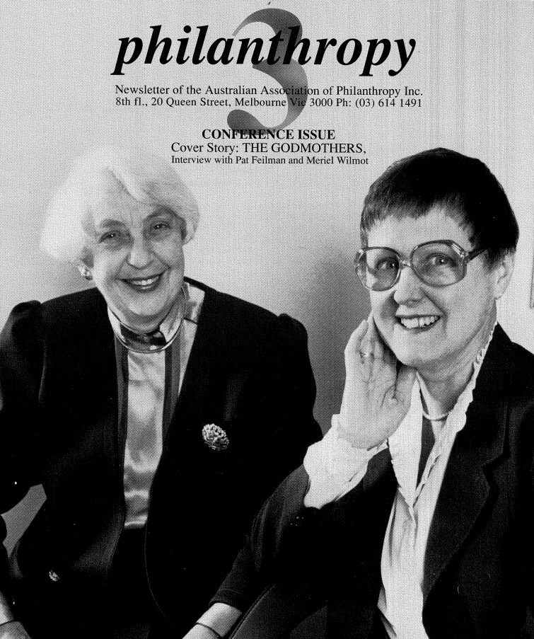 In this intriguing look back in time, we share a 1989 newsletter from Philanthropy Australia, then called the Australian Association of Philanthropy. The cover story entitled ‘The Godmothers’, interviews Pat Geilman and Meriel Wilmot, the founding ‘godmothers’ of Philanthropy Australia.