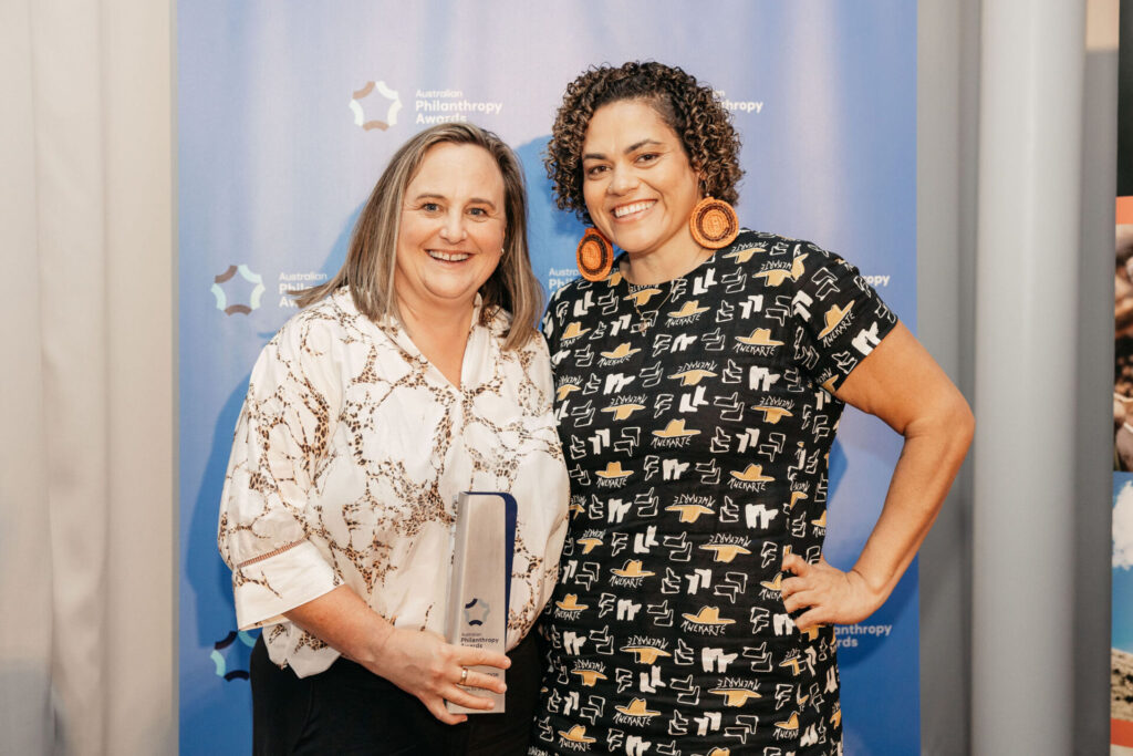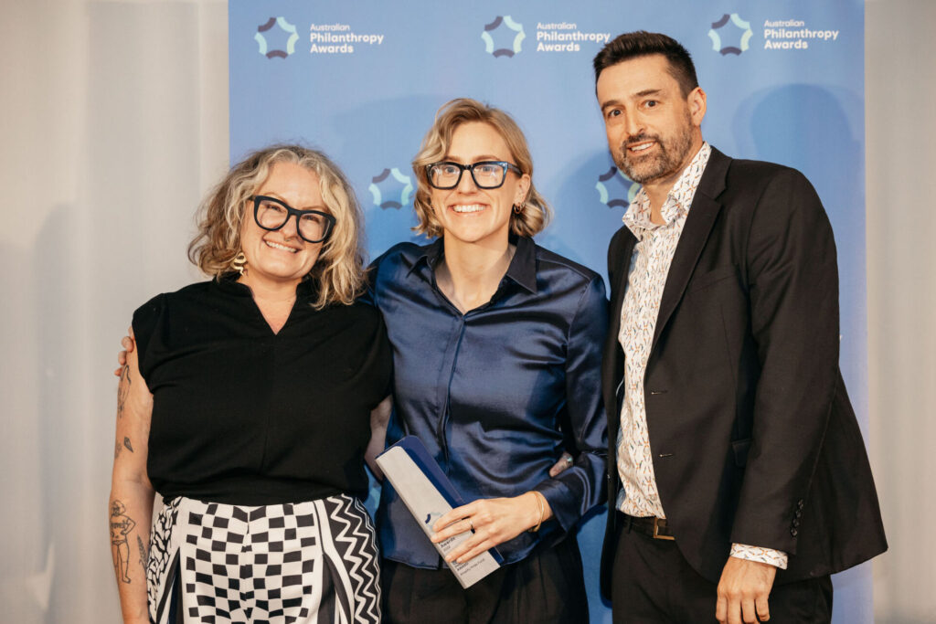 Left to right: Jones Jones from The Aurora Group – A Ruby Foundation Ltd, Em Scott from GiveOUT and Ben Rodgers from the Inner North Community Foundation (and Chair of Community Foundations Australia). Em and Jones accepted the 2024 Community Philanthropy Award on behalf of the Amplify Pride Fund.Centre: Steffi Chang from Plan International Australia, who, with partners in the Gender Compass initiative, were a finalist in the Collaboration Award category. Left to right: Michael Drapac and Professor Gary Rogers, Dean of the Deakin University School of Medicine. Michael was the recipient of the Inclusion Award 2024 for his philanthropy that created the Damion Drapac Centre at Deakin University. MC of the evening was ABC disability affairs reporter Nas CampanellaLeft to right: Michael West who delivered the Welcome to Country and co-presented the First Nations Award, Adam Ognall from Philanthropy Australia and Kim Collard the Chair of the Bibbulmun Fund, recipient of the First Nations Philanthropy Award 2024. Left to right: Climate 200 Executive Director Byron Fay, Climate 200 donor Robert Keldoulis and Antonia Ruffell, who presented the Innovation Award 2024 to Climate 200.Left to right: Laura McMillan from the Macquarie Group Foundation (who presented the Leadership Award 2024) and Ginette Snow (recipient of the Leadership Award with her husband Terry Snow AM). Left to right: Climate 200 Executive Director Byron Fay, Simon Holmes à Court (Climate 200 convenor) and Amanda Martin OAM from the Australian Environmental Grankmakers Network (AEGN) who presented the Environmental and Climate Award 2024 to Climate 200. Left to right: Jill Reichstein OAM, Sarah Bailey from MECCA M-POWER and Julie Reilly OAM (CEO of Australian Investing in Women). Jill and Julie presented the 2024 Eve Mahlab AO Gender-wise Philanthropy Award to MECCA M-POWER. Collaboration Award recipients left to right: Kristi Mansfield, CEO and Co-Founder of Seer Data & Analytics, Andrea Burazor, Project Manager at Seer Data & Analytics, Sandy Blackburn, Founder and Managing Director of Social Outcomes, Caroline Gurney, CEO of Future Generation.Cambodia Children’s Fund received the International Philanthropy Award 2024 for the Neeson Cripps Academy. Pictured left to right are: Olivia Pigeot and Isabella Neal-Shaw from CCF.Kim Collard from Bibbulmun Fund (left) with Stu MacLeod from the Fremantle Foundation accepted the First Nations Philanthropy Award 2024.Left to right: Ginette Snow and Georgina Byron AM (CEO of The Snow Foundation)Jenny Stephens (left) and Jon Cheung (far right) presented the Inclusion Award 2024 to Michael Drapac (centre). Second from left is Professor Gary Rogers, Dean of the Deakin University School of Medicine. Second from right is Jimmy Buck, Chief Advancement Officer at Deakin University. Michael was the recipient of the Inclusion Award 2024 for his philanthropy that created the Damion Drapac Centre at Deakin University.Left to right: CEO of Australia Communities Foundation, Maree Sidey with Larissa Baldwin-Roberts from GetUp! Maree and Larissa accepted the Collaboration Award 2024 on behalf of the Voices for Impact initiative.Michael Curran from NV Access, which was a finalist in the Inclusion Award category.
