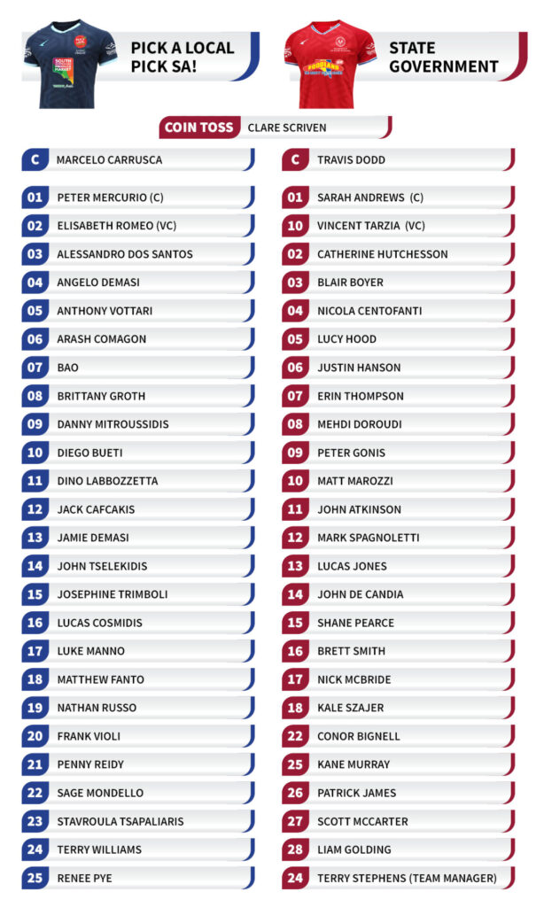 With both teams fielding a mix of experienced and amateur players, it was SA Government who scored first in the first five minutes with a perfectly-timed strike from Shane Pearce. Adelaide United coaches; Travis Dodd, for Government, and Marcello Carrusca, Pick A Local, worked well to balance players throughout the game matching skills and experience, and while SA Government followed a few minutes later with a second goal scored by Peter Gonis, it wasn’t long before Pick a Local, Pick SA made their way onto the scoreboard with a goal from Nathan Russo. With the sun beating down, players were feeling the heat in more ways than one.