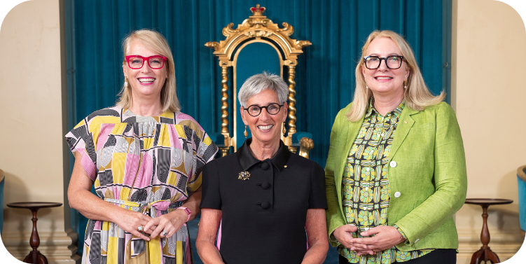 Significant milestone in history: Her Excellency the Honourable Linda Dessau AC CVO, Governor of Victoria (centre), with The Right Honourable Lord Mayor of Melbourne Sally Capp (left) and Lord Mayor’s Charitable Foundation Chief Executive Officer Dr Catherine Brown OAM (right). |